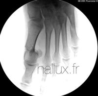 Enfin, on peut observer que les sésamoïdes, petits os normalement situés sous la tête du premier métatarsien, ont retrouvé leur position normale, non luxés...